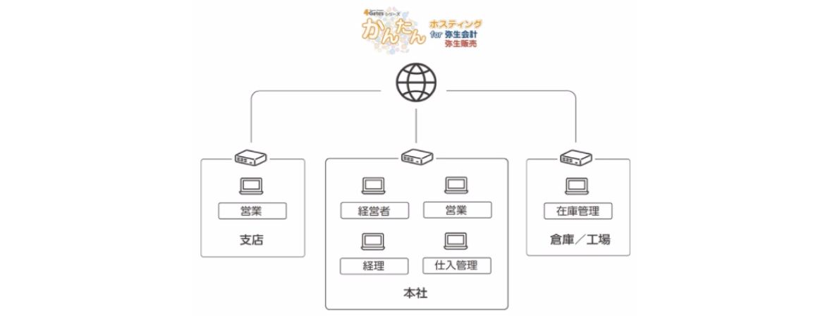 『かんたんホスティング for 弥生会計 弥生販売』は、「自社でサーバーを持ちたくない」「初期コストを抑えて導入したい」という方へ、ソフトの導入からサーバーの管理まで、ワンパッケージでご提供するサービスです。