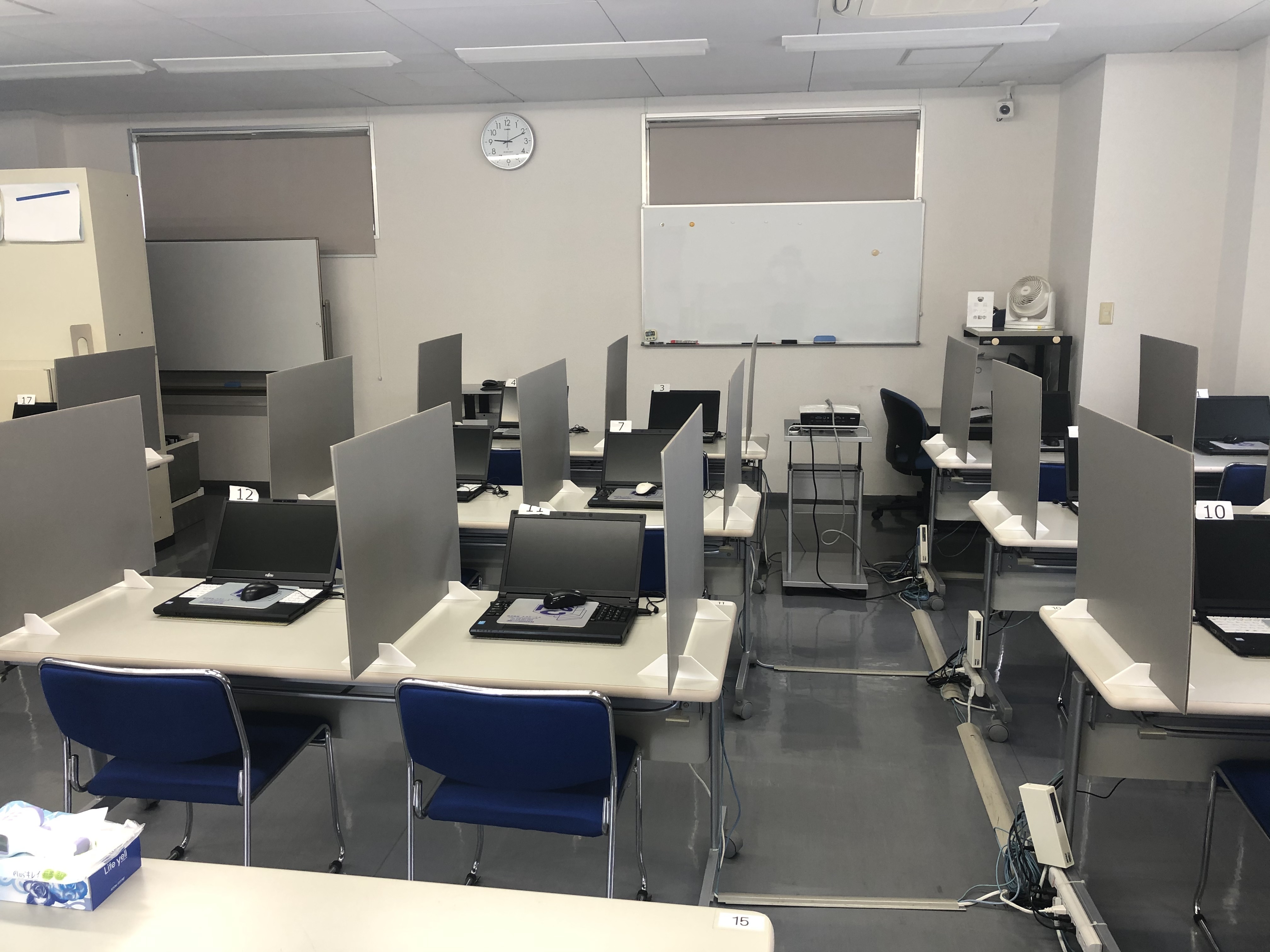 消毒液の設置や、パソコン、備品類の消毒液による清掃を強化します。